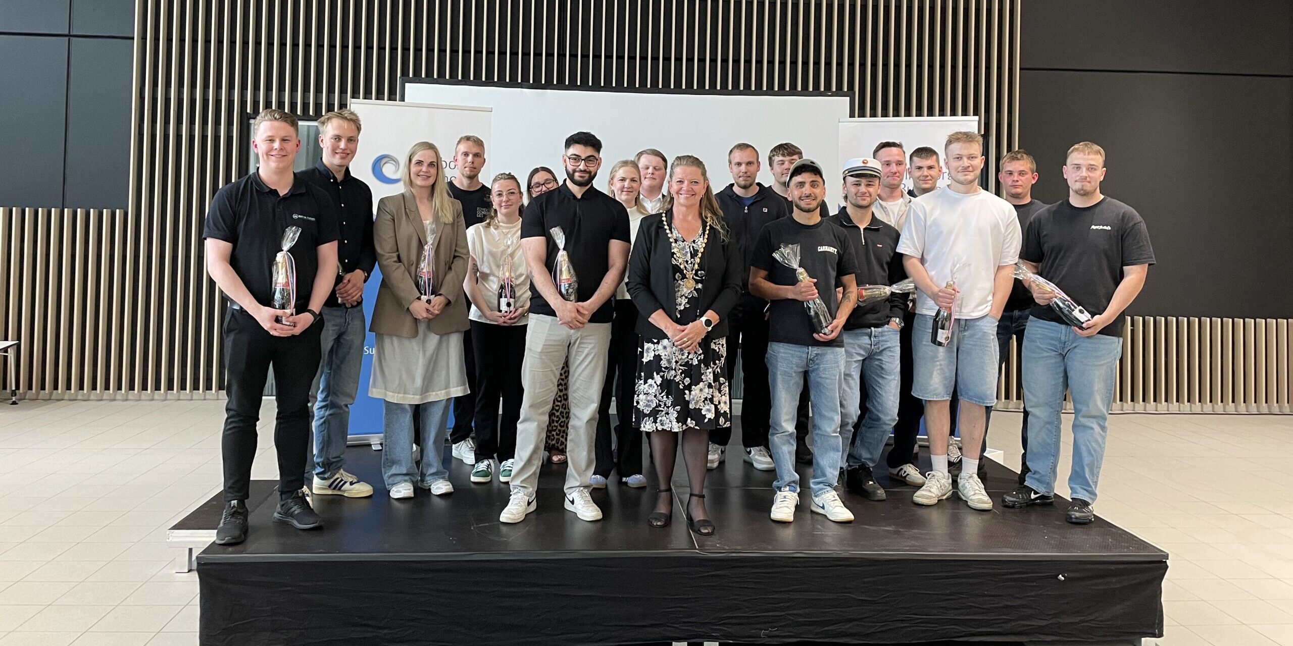 Når borgmester Helle Gade giver håndtryk til de nyudlærte, markerer det ikke bare afslutningen på en uddannelse – det er en hyldest til faglighed, vedholdenhed og det stærke fællesskab i erhvervslivet.